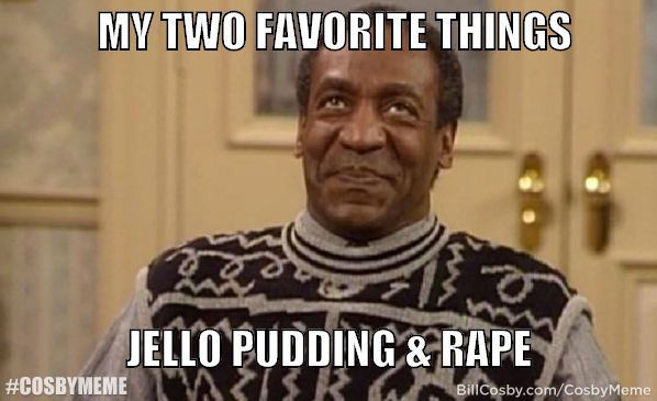 "My two favorite things (--) Jell-O pudding & rape," tweeted E.J. Coughlin over a photo of Cosby smiling.