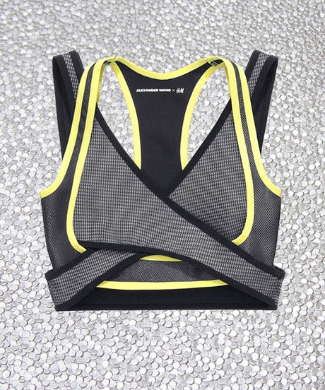 At a press conference in NYC this morning, Wang took editors through the collection. Yes, WANG-emblazoned sweatshirts and pullovers, mesh-paneled leggings, cropped bralettes, and scuba dresses abound. But, you may not have expected that the materials were custom-blended in Italy — and actually count as performance wear, should you choose to wear 'em for a workout. (There’s even a T-shirt with a logo that only appears when you sweat.)